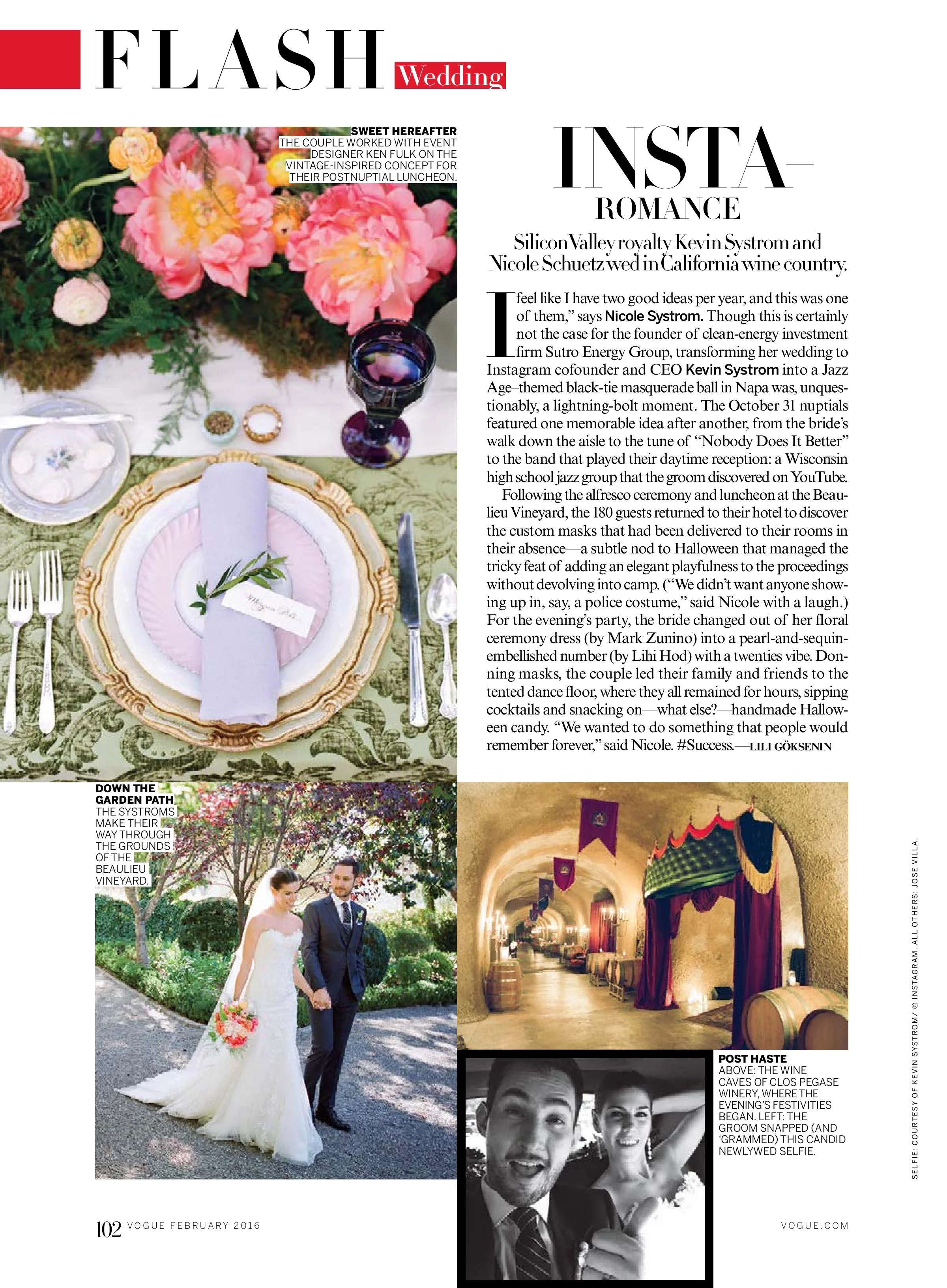 SiliconValley royalty Kevin Systrom and Nicole Schuetz wed in California Wine Country.